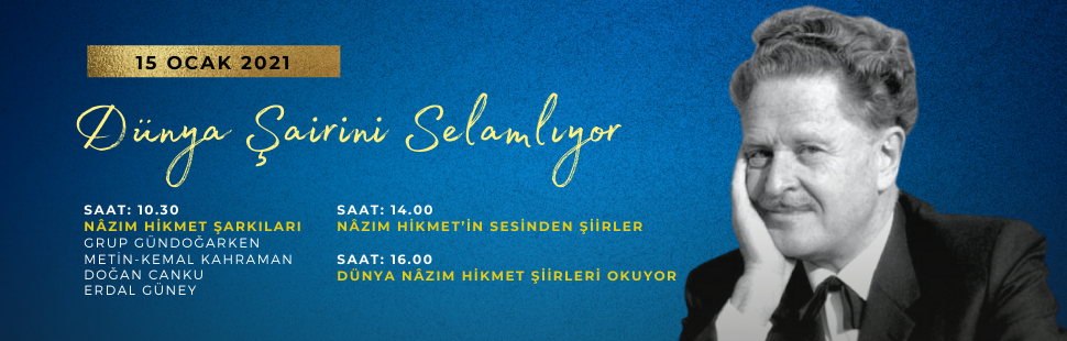 Etkinliklerde ayrıca Japonya Kültür Ataşesi Takumi Suemitsu, Macaristan Kültür Ataşesi Balâzs Szöllössy ve Institut Français Türkiye’den Ghislain Vidal’ın Nâzım Hikmet için gönderdiği mesajlar yayınlanacak.