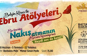 Ramazan etkinlikleri kapsamında 28 Haziran, 05 Temmuz ve 12 Temmuz 2015 tarihlerinde Belgin Kırıcı ile Ebru Atölyelerinde, su üzerine nakış atmanın sırrı öğretilecek.