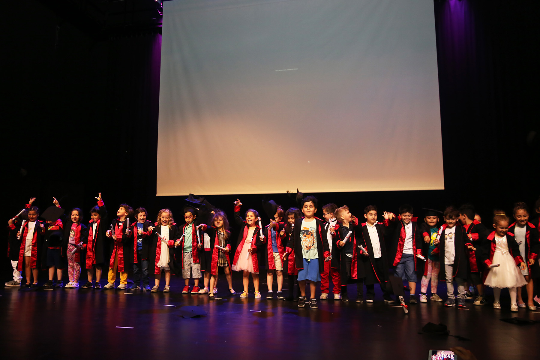 Kostümleri ve birbirinden eğlenceli dans gösterileriyle ailelerine unutamayacakları anlar yaşatan miniklerin yıl sonu gösterileri, keplerini havaya atmalarıyla sona erdi.