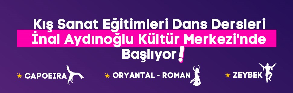 İnal Aydınoğlu Kültür Merkezi’nde düzenlenecek eğiitmlerde; oryantal - roman, zeybek ve capoeira dersleri verilecek. Kış Sanat Eğitimleri'nin kayıtları, www.atasehir.bel.tr adresi üzerinden online olarak alınacak. Kayıtlar 28 Şubat Çarşamba günü başlayacak. Dans eğitimlerine kayıt olmak için lütfen bu linki tıklayınz.