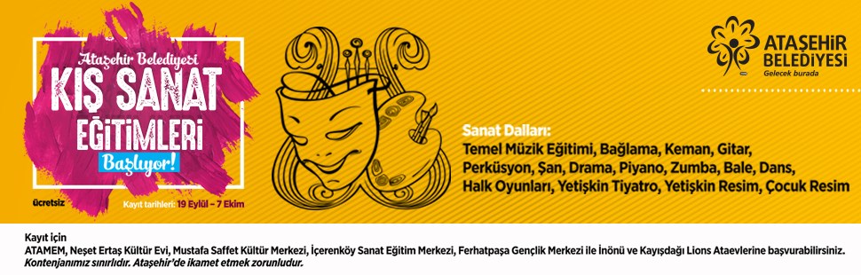 Eğitimler ve kayıtlar; Mustafa Saffet Kültür Merkezi, ATAMEM, Neşet Ertaş Kültür Merkezi, İçerenköy Sanat Eğitim Merkezi, İnönü Ataevi, Kayışdağı Lions Ataevi ve Ferhatpaşa Gençlik Merkezi’nde yapılacaktır.