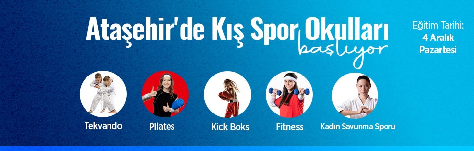 Kış Spor Okullarına kayıtlar 27 Kasım 2023 tarihinde başlayacak ve kayıtlar Ataşehir Belediyesi’nin web sayfasından online olarak yapılacak. Haftada 2 gün verilecek spor eğitimleri 04 Aralık Pazartesi günü itibariyle başlayacak.