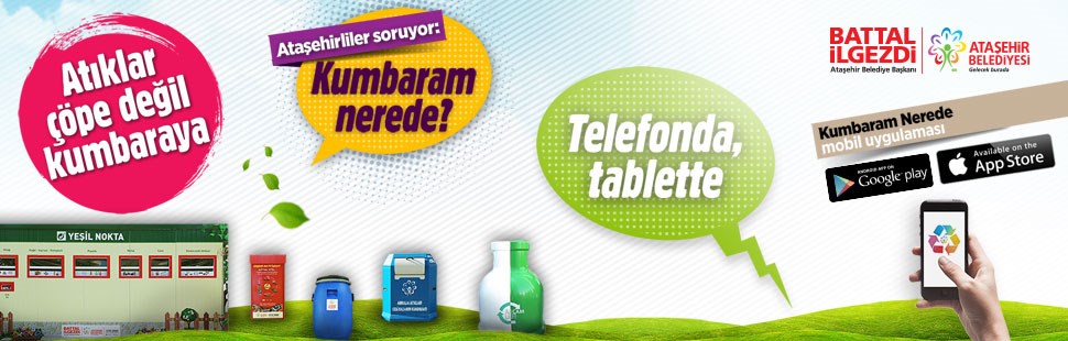 Bu konuda asıl amaç, doğal kaynaklarımızın verimli bir şekilde kullanılması ve geleceğimiz olan çocuklarımıza daha iyi bir dünya bırakılması. Geri dönüşebilir atıkları (ambalaj, cam, pil, elektronik atık ve bitkisel atık yağ) kaynağında ayrı toplayarak geri dönüşüme tekrar kazandırmak amacıyla, Ataşehir Belediyesi Çevre Koruma ve Kontrol Müdürlüğü tarafından “Kumbaram Nerede?” mobil uygulaması hizmete sunuldu.