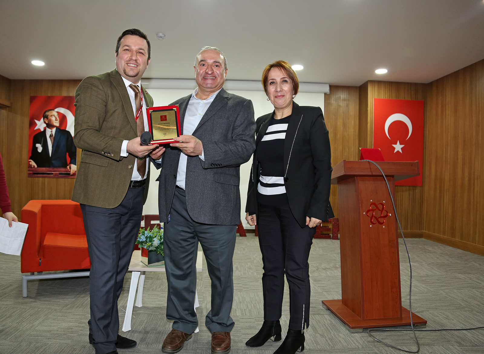 Ataşehir Belediyesi Çevre Koruma ve Kontrol Müdürü Ayten Kartal ve Prof. Dr. Mikdat Kadıoğlu’na, seminer sonunda Mektebim Okulları tarafından plaket sunuldu.