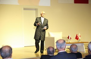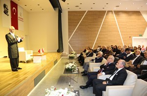 Açılış için düzenlenen kokteyl sonrasında, Ülger'in "Atatürk ve Çağdaş Olmak" konulu söyleşisi de sergi alanında gerçekleşti.