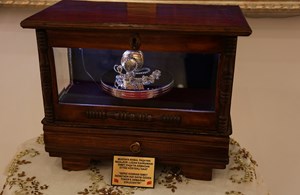 Açılışta katkılarından dolayı Eriş Ülger'e minyatür bir Atatürk heykeli ile çiçek hediye edildi.