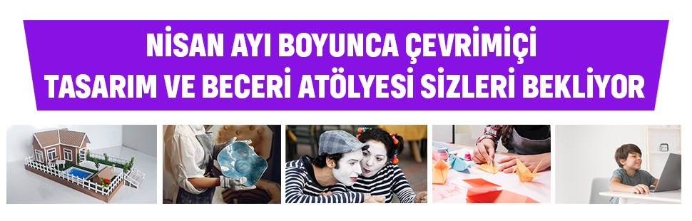 NİSAN AYINDA DA ÇEVRİMİÇİ TASARIM VE BECERİ ATÖLYELERİ ÇOCUKLARI BEKLİYOR