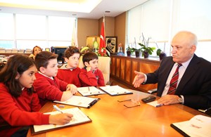 Öğrencileri makamında ağırlayan Ataşehir Belediye Başkan Yardımcısı İlhami Yılmaz, öğrencilere belediye ve belediyecilik hakkında bilgi verdi.