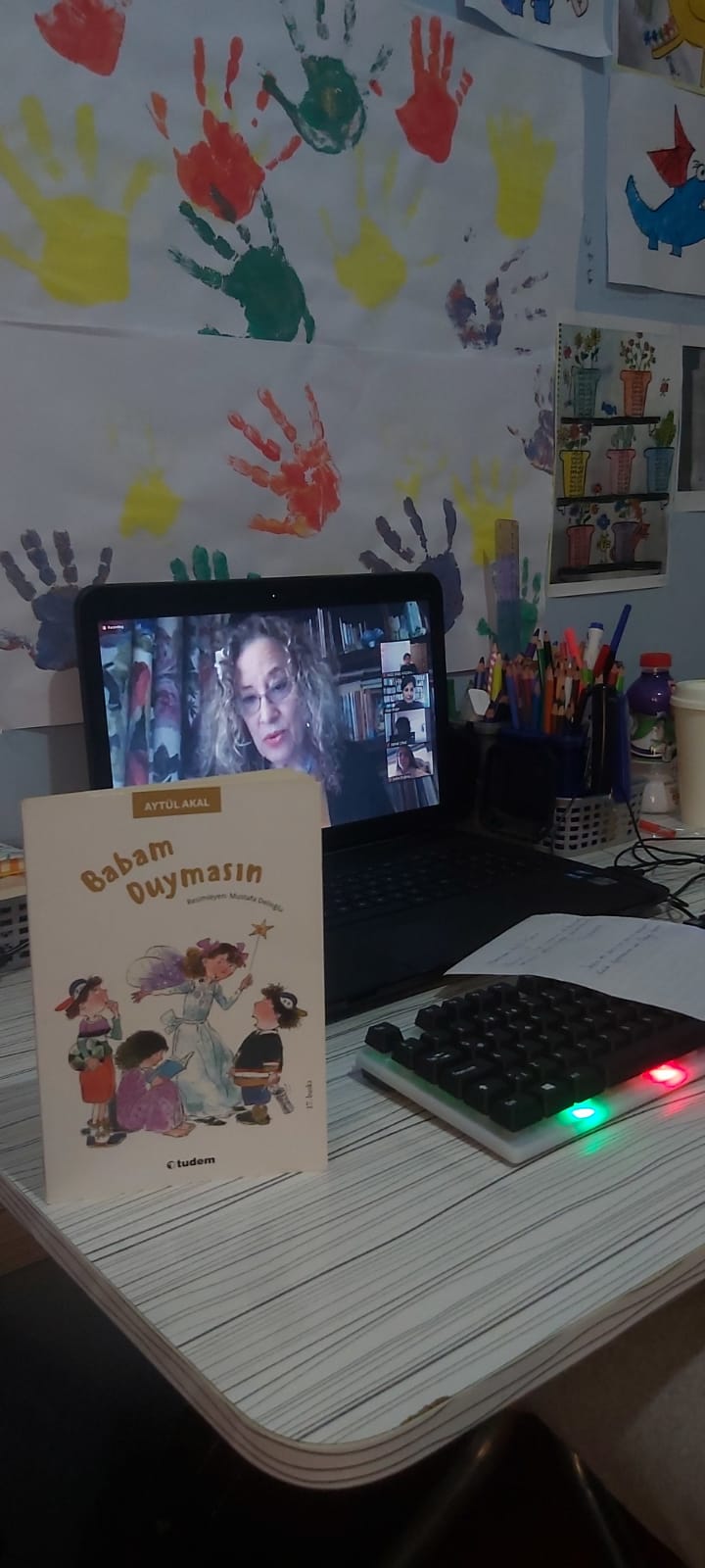 Online Çocuk Kitap Kulübünün geçen hafta konuğu ‘Yazara Mektup’ etkinlikleri çerçevesinde yazar Aytül Akal’dı. Akal’ın, ‘Babam Duymasın’ adlı kitabını okuyan çocuklar kitabın yazarı Aytül Akal’a kitapla ve yazarlık maceralarıyla ilgili sorular sordular. 40 dakika boyunca çocukların sorularını yanıtlayan Aytül Akal öğrencilerin yazma ve okuma heveslerini artırıcı bilgiler verdi.