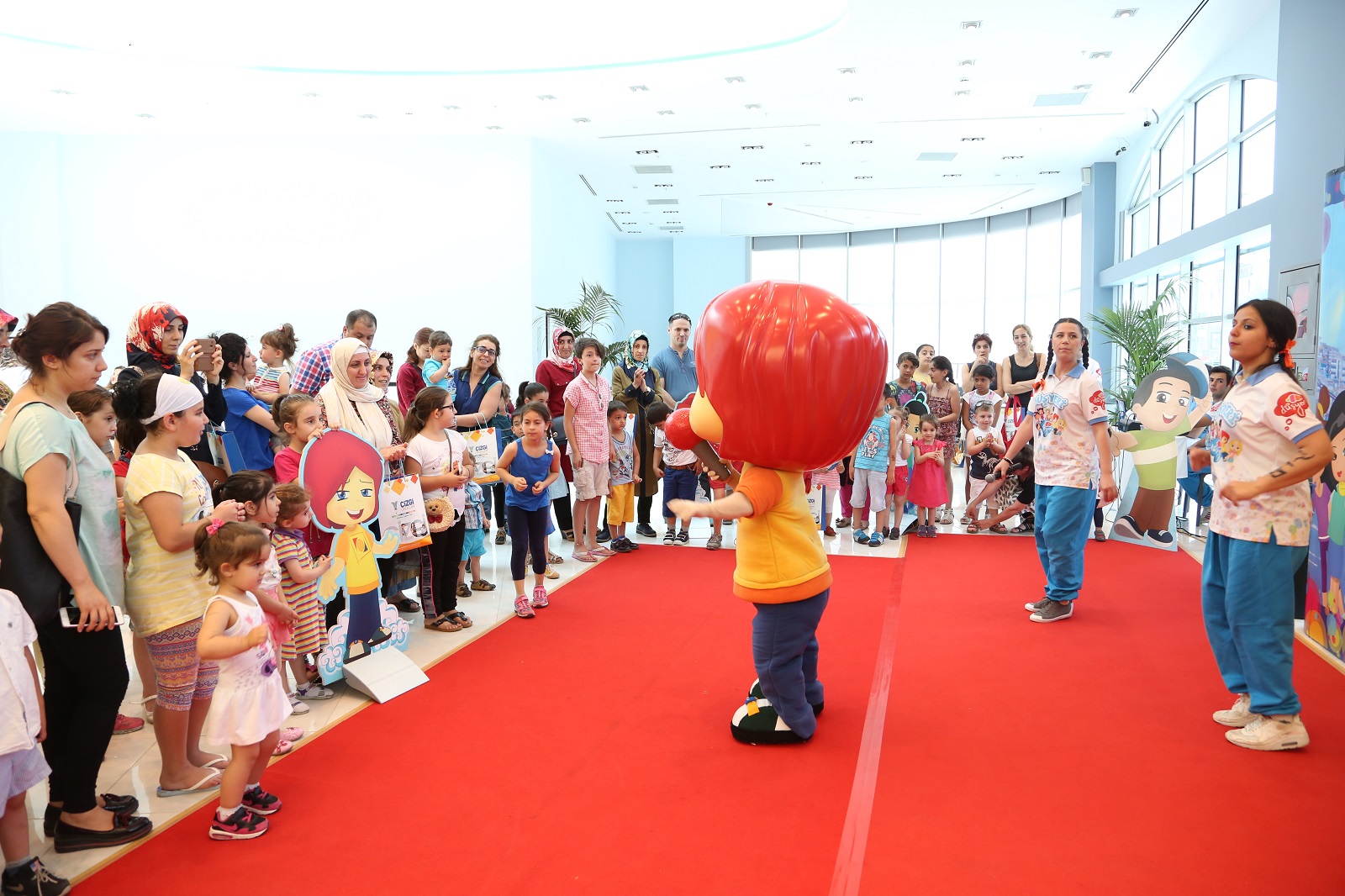 Çocuklardan büyük ilgi gören sevimli karakterler, faydalı bilgiler verdiği oyunlarla miniklere keyifli anlar yaşattı.