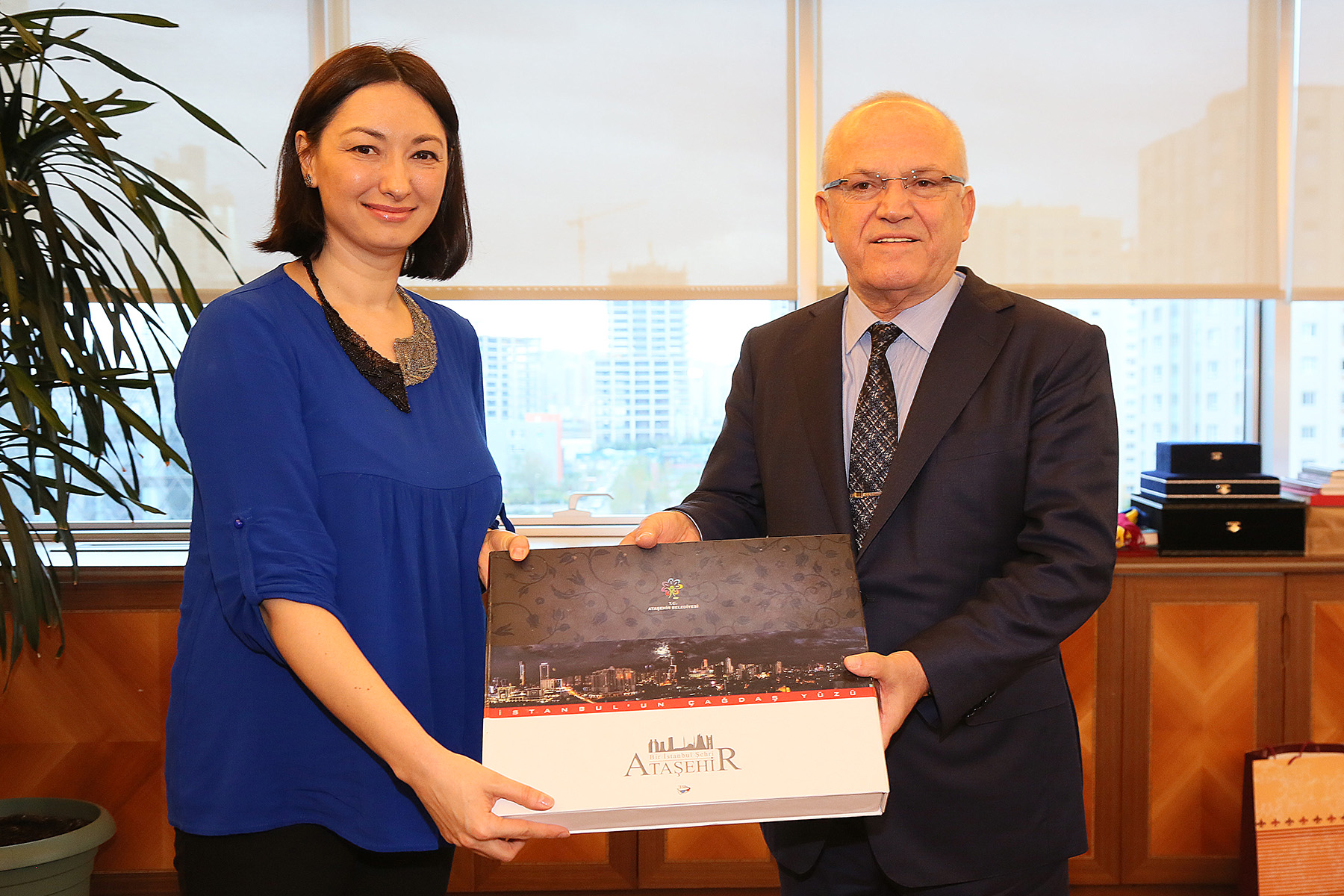 Ziyaret sonrası ülkelerinden getirdikleri hediyelerini sunan ekibe, İlhami Yılmaz Ataşehir’i tanıtan kitaplar armağan etti.