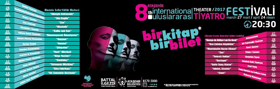 *8. Uluslararası Ataşehir Tiyatro Festivali kapsamında sahnelenecek oyunların biletleri, ücretsiz olarak “Bir Kitap, Bir Bilet” kampanyası dahilinde kitap karşılığı verilecektir.
