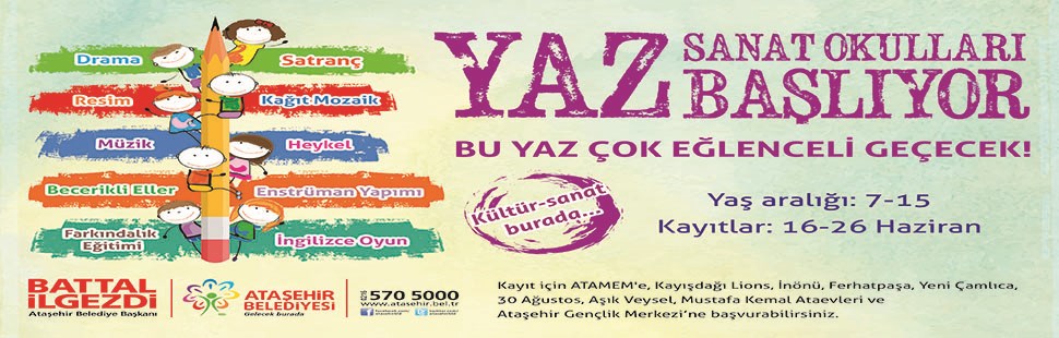 Ataşehir Belediyesi Kültür ve Sosyal İşler Müdürlüğü ile Sosyal Yardım İşler Müdürlüğü’nün ortaklaşa gerçekleştireceği atölye çalışmalarının kayıtları 16-26 Haziran tarihleri arasında ATAMEM, Kayışdağı Lions, İnönü, Ferhatpaşa, Yeni Çamlıca, 30 Ağustos, Aşık Veysel, Mustafa Kemal Ataevi - Sosyal Hizmet Merkezleri ve Ferhatpaşa Gençlik Merkezi’nden yapılacak.