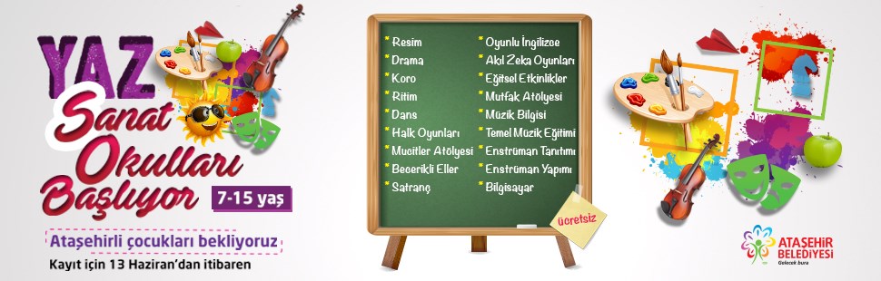 Ataşehir Belediyesi Kültür ve Sosyal İşler Müdürlüğü ile Kadın ve Aile Hizmetleri Müdürlüğü’nün ortaklaşa düzenledikleri Yaz Sanat Okulunun kayıtları 13 Haziran 2016’da başlıyor.
