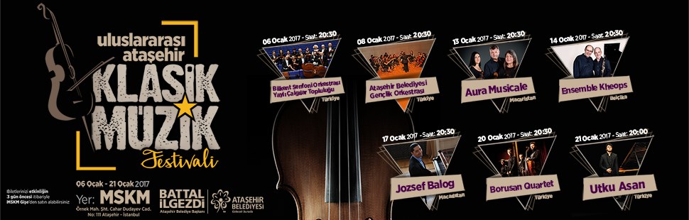 Dünyaca ünlü müzisyenlerin yer alacağı festival, 6 – 21 Ocak tarihlerinde Ataşehir Belediyesi Mustafa Saffet Kültür Merkezi’nde düzenlenecek. Bilkent Senfoni Orkestrası Yaylı Çalgılar Topluluğu’nun açılış konseriyle başlayacak olan festivalde genç yeteneklere de yer verilecek.