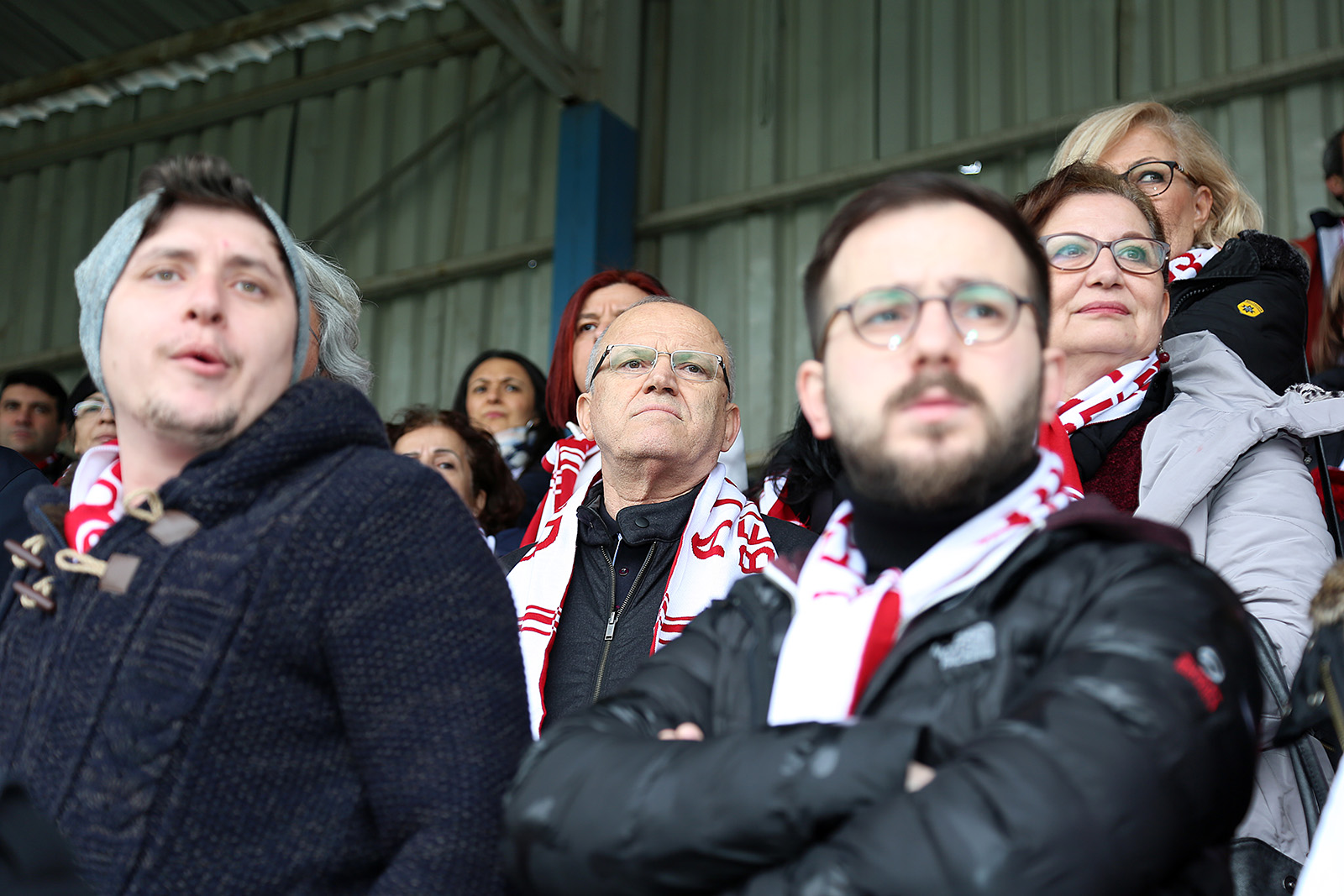 Ligin bitmesine 6 maç kala şampiyonluğun en iddialı iki takımını izlemek üzere çok sayıda seyirci tribünlerdeki yerlerini aldı. İzleyenlerin maç boyunca yaptıkları tezahüratlar ve tribün şovları maça renk kattı.