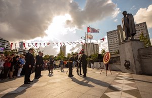 Ataşehir Cumhuriyet Meydanı’nda düzenlenen tören; Ataşehir Kaymakam İsmail Hakkı Ertaş, Ataşehir Belediye Başkanı Battal İlgezdi, Garnizon Komutanı Kıdemli Albay Metin Durmuş ve İstanbul Anadolu Cumhuriyet Başsavcı Vekili Cengiz Cem Karakaşlı’nın Atatürk anıtına çelenk sunmasıyla başladı.
